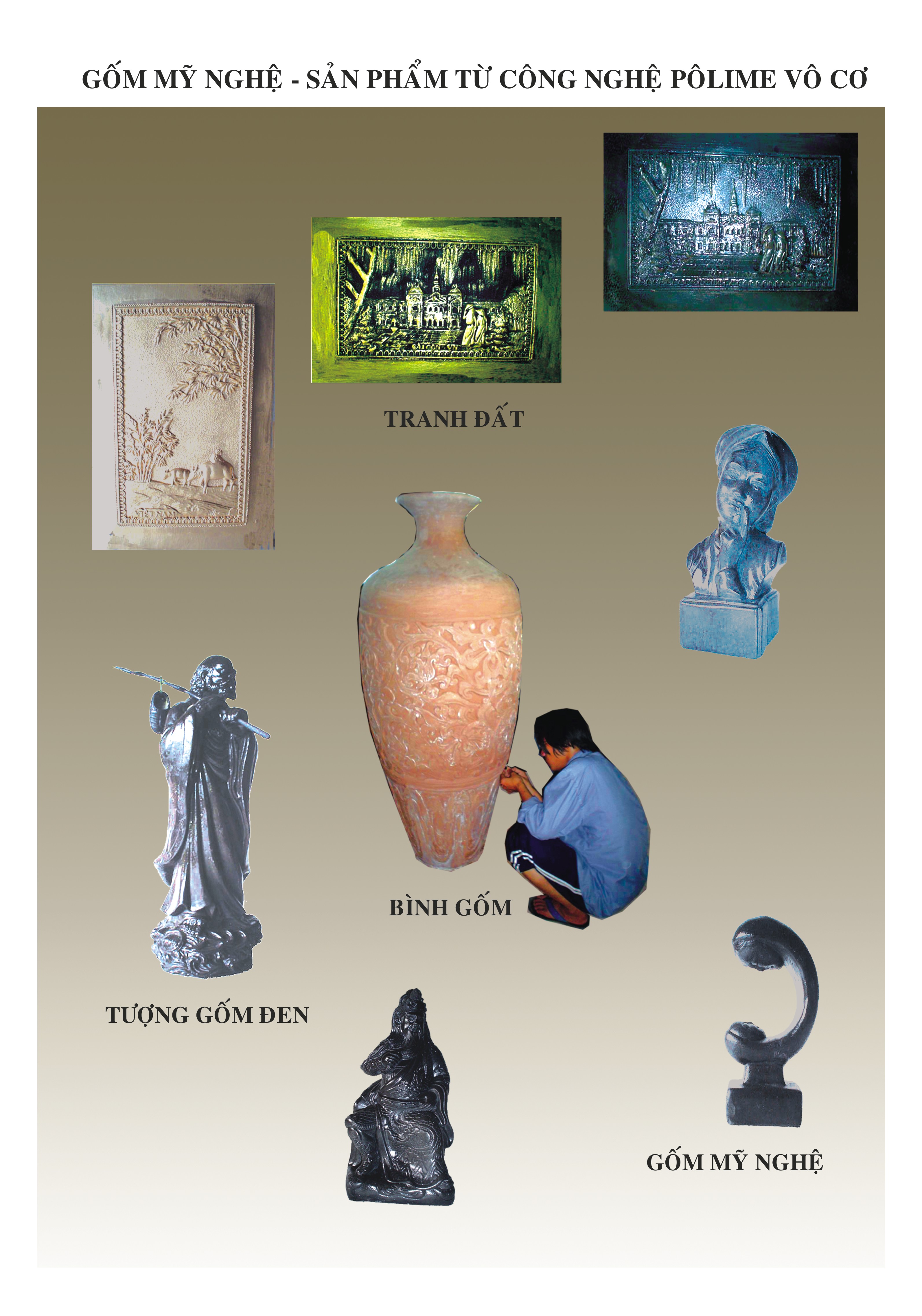 2- Lĩnh vực gốm không nung: Xi măng GEOPOLYMER từ đất sét làm nguyên liệu để sản xuất những sản phẩm gốm dân dụng không nung, gốm mỹ thuật không nung, men gốm không nung.