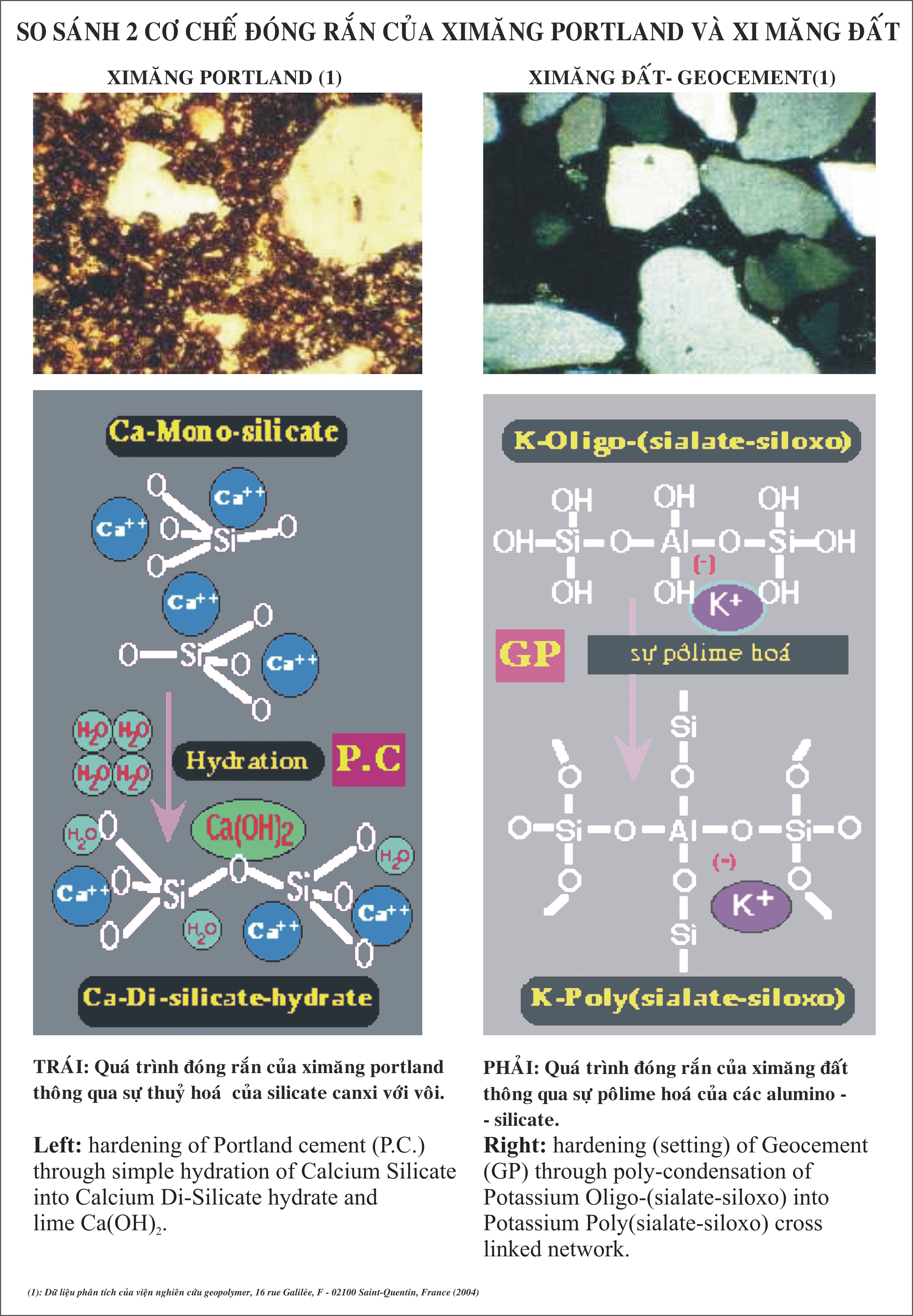 Quá trình đông rắn của xi măng GEOPOLYMER cũng dựa trên phản ứng này.